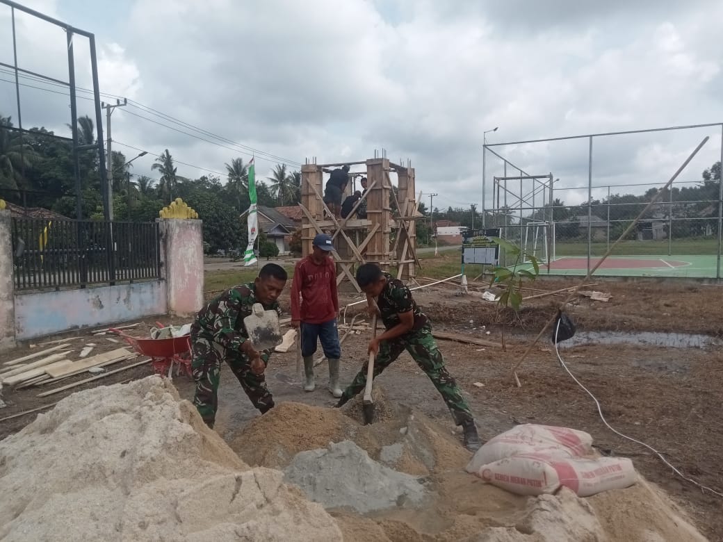 Pada siang yang panas terik itu, raut wajah anggota Satgas TMMD memperlihatkan jejak kelelahan. Namun, hal tersebut tidak menyurutkan semangat mereka untuk terus bekerja keras dalam menyiapkan adukan cor yang akan menjadi bahan utama dalam pembuatan tiang bak penampungan air bersih.
