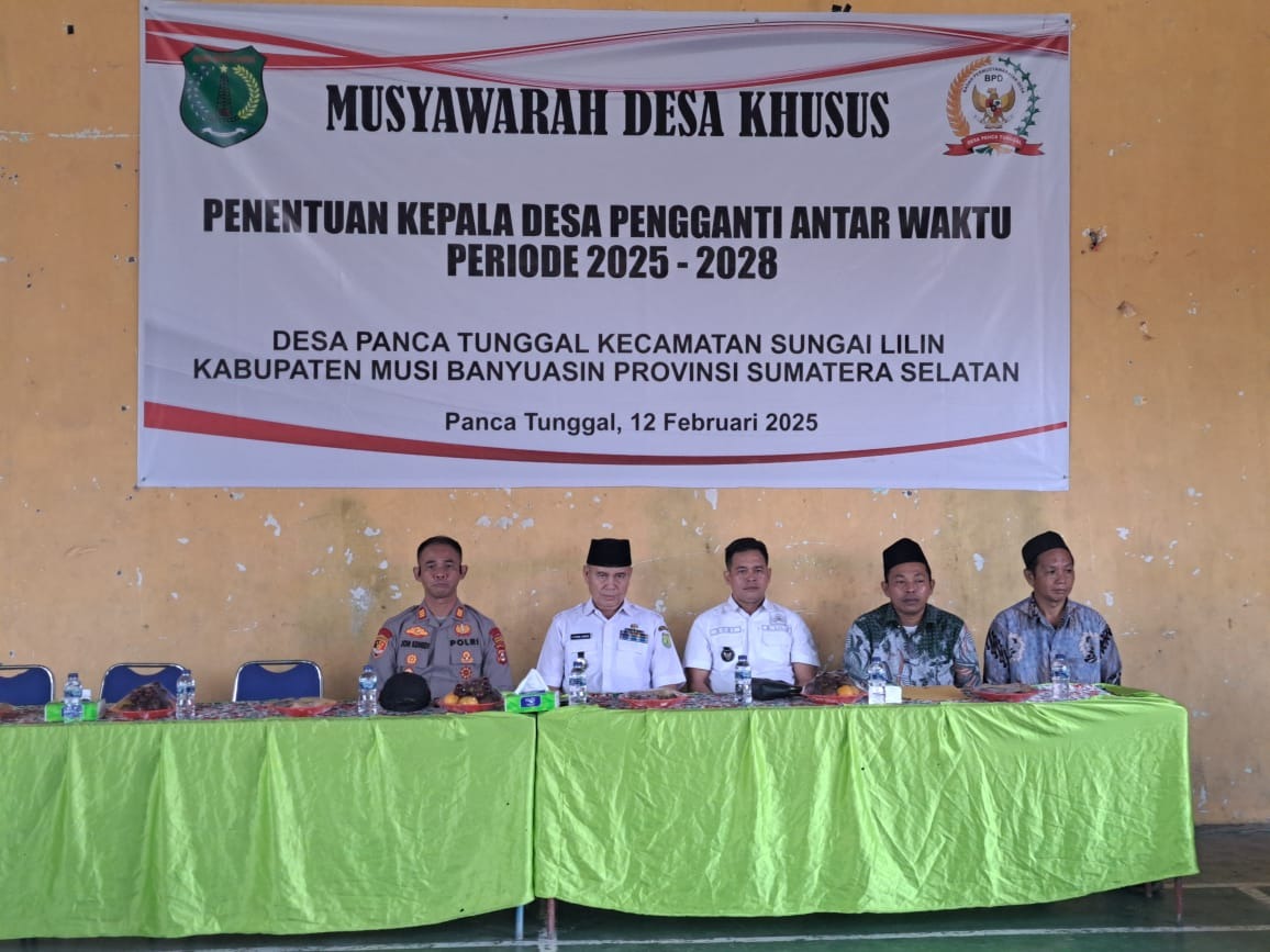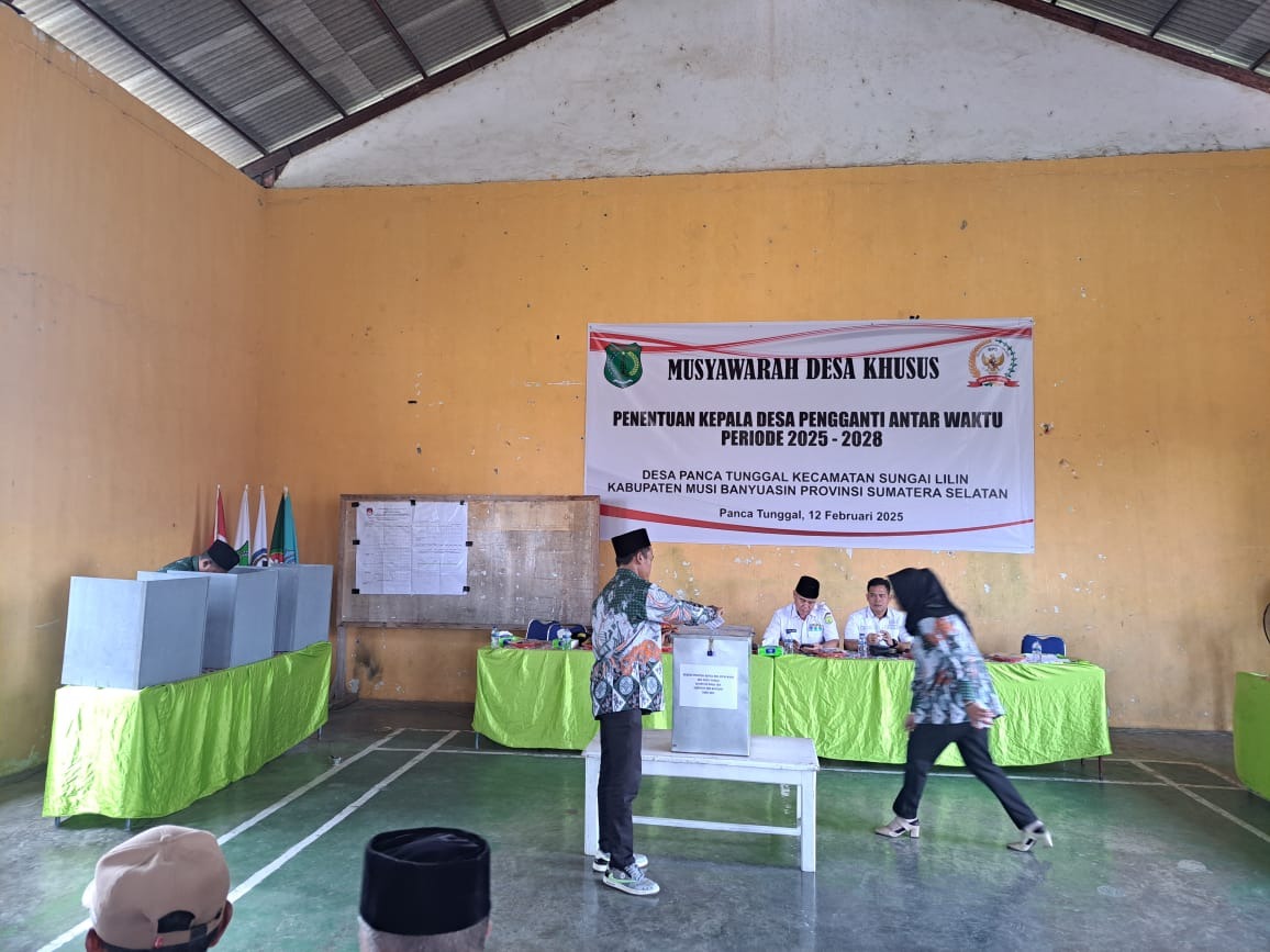 Pemilihan Kepala Desa Panca Tunggal C5 Kecamatan Sungai Lilin digelar pada hari Rabu (12/02/2025) yang diikuti oleh 3 kandidat calon Kepala Desa (Kades) yang bersaing memperebutkan suara rakyat untuk tampil sebagai pemenang dalam helatan Pilkades Desa Panca Tunggal C5.