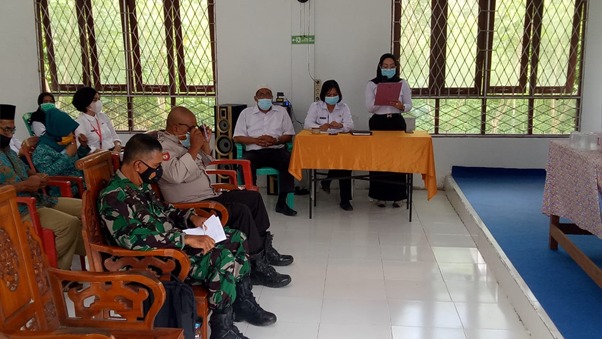 Kubu Raya – Plh. Pasiter Kapten Inf. Jiyo rapat bersama puskesmas Kuala Mandor B yang bertempat di aula puskesmas Kec. Kuala Mandor B. Kamis (10/06/2021)