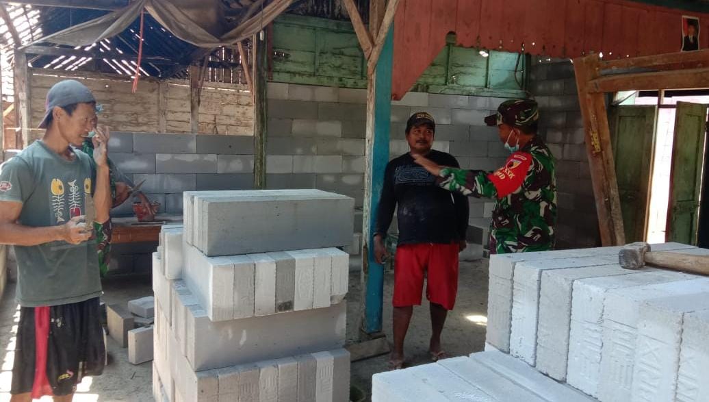 Bojonegoro Komandan Satgas (Satuan Tugas) TMMD (TNI Manunggal Membangun Desa) ke-110 Kodim 0813/Bojonegoro Lettu Ckm Suroto, melakukan pengawasan Setiap pelaksanaan pembangunan RTLG (Rumah tidak Layak Huni) dengan program Aladin (Atap, Lantai dan Dinding).