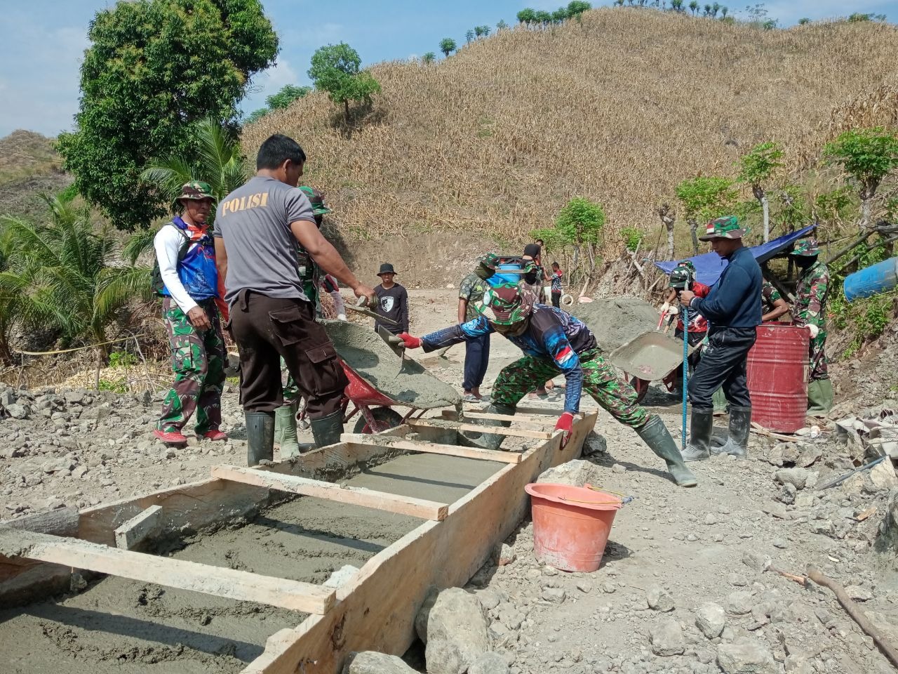 BONE – Suasana penuh kebersamaan dan gotong royong antara TNI-Polri dan masyarakyat dalam Program TNI Manunggal Membangun Desa (TMMD) ke-122 Kodim 1407/Bone di Desa Mamminasa, Kecamatan Lamuru, Kabupaten Bone. Rabu (23/10/24).