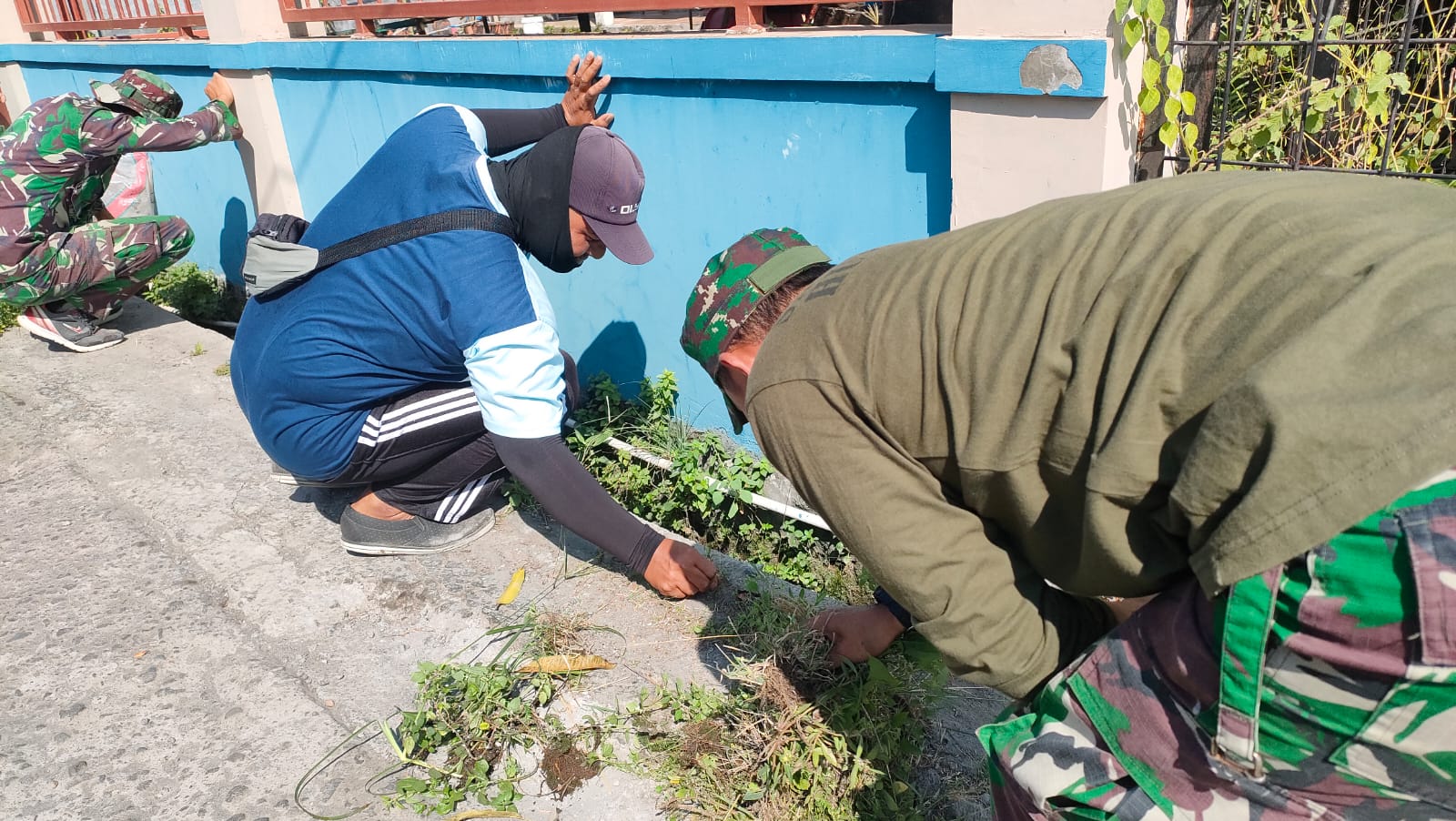 Dikatakan Dan SSK pagi ini dirinya bersama Anggota Satgas dan warga masyarakat bersama-sama membersihkan lingkungan, memungut sampah, serta mencabut rumput liar yang sudah mulai memanjang di sekitar lokasi TMMD.