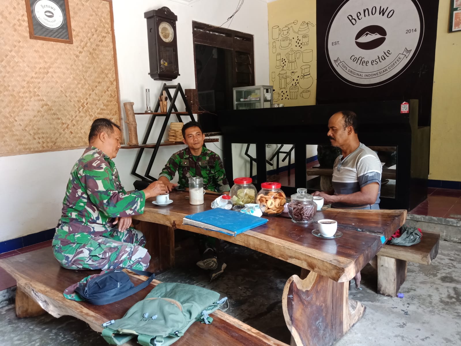 Kegiatan komsos di laksanakan oleh anggota satgas TMMD dengan memanfaatkan waktu istirahat. Seperti yang di laksanakan oleh Serda Mugiharno saat melaksanakan komsos bersama tokoh masyarakat desa Benowo, Rabu (18/10/2023).