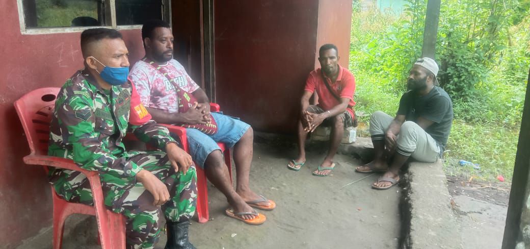 Babinsa Koramil 1712-02/Sarmi, Sertu Laode Harnan mengatakan bahwa giat Komsos dengan warga sekitar lokasi TMMD merupakan upaya menjalin keakraban, Rabu (2/6/2021).