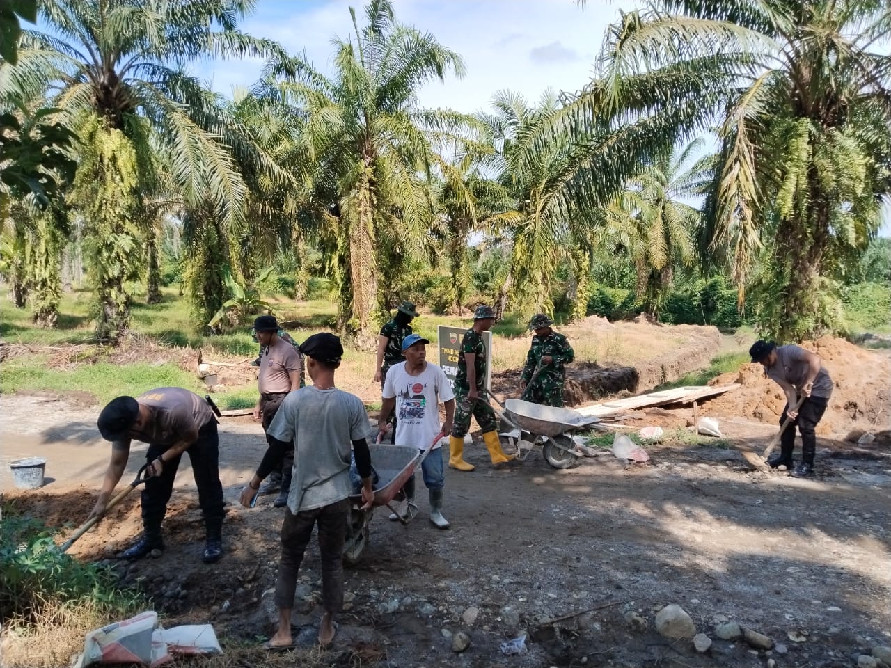 Selain perataan, gotong royong juga terlihat pada pembangunan infrastruktur pendukung jalan. Satgas TMMD bersama warga bekerja sama dalam pengerjaan Box Culvert. Mereka terlihat mengaduk semen, mengangkut material, dan menyiapkan pondasi untuk Box Culvert, yang berfungsi vital sebagai saluran drainase agar jalan tidak mudah rusak akibat genangan air.
