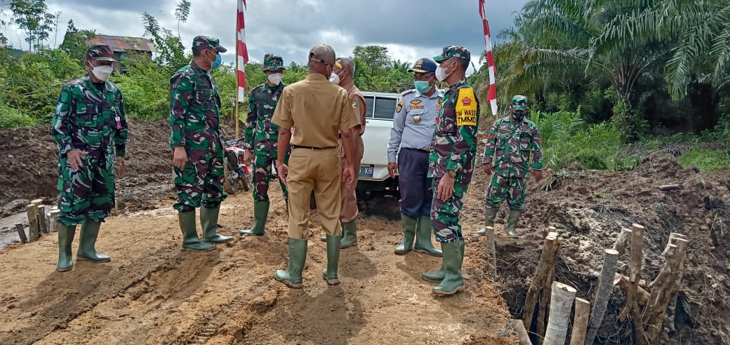 Setelah menerima paparan di Makodim 1009/Tla oleh Dansatgas, dilanjutkan peninjauan ke lokasi sasaran TMMD, baik sasaran fisik maupun sasaran non fisik di Dusun Riam Pinang Kel. Tanjung Kec. Bajuin.