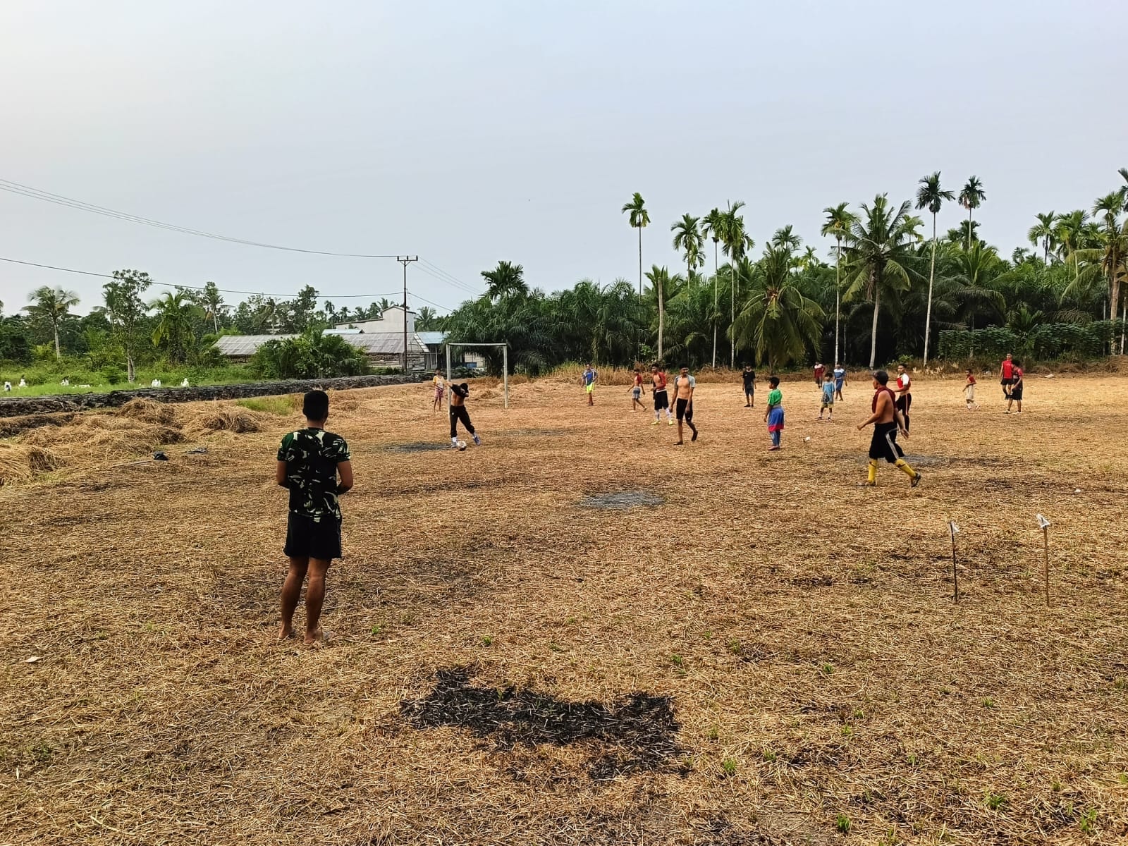 Remaja Teluk Gora dengan gembira dan bahagia mereka uji coba lapangan bola yang telah selesai dikerjakan, sudah bersih dan lapangan sudah siap dengan perlengkapannya.