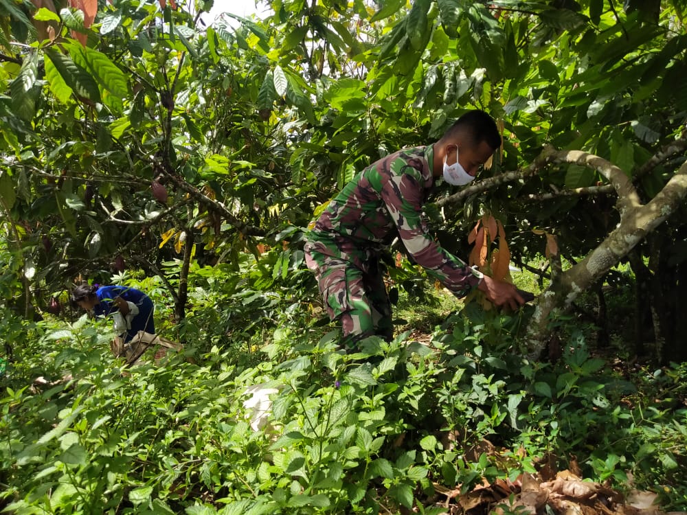 Hari kelima belas, Satgas TMMD ke 111 Kodim 0212/TS, bertempat di lahan kebun coklat Bu Rika Pangaben di Desa Siuhom, Kec. Angkola Barat, Kab.Tapsel, Prada Adanan Rangkuti, Selasa (29/6/2021), mengatakan lebatnya gulma di tanaman coklat Bu Rika akan mengganggu tanaman untuk produksimaksimal, Satgas bersihkan gulma di sekitar tanaman coklat kebun Bu Rika Pangaben di TMMD Kodim Tapsel. (*)