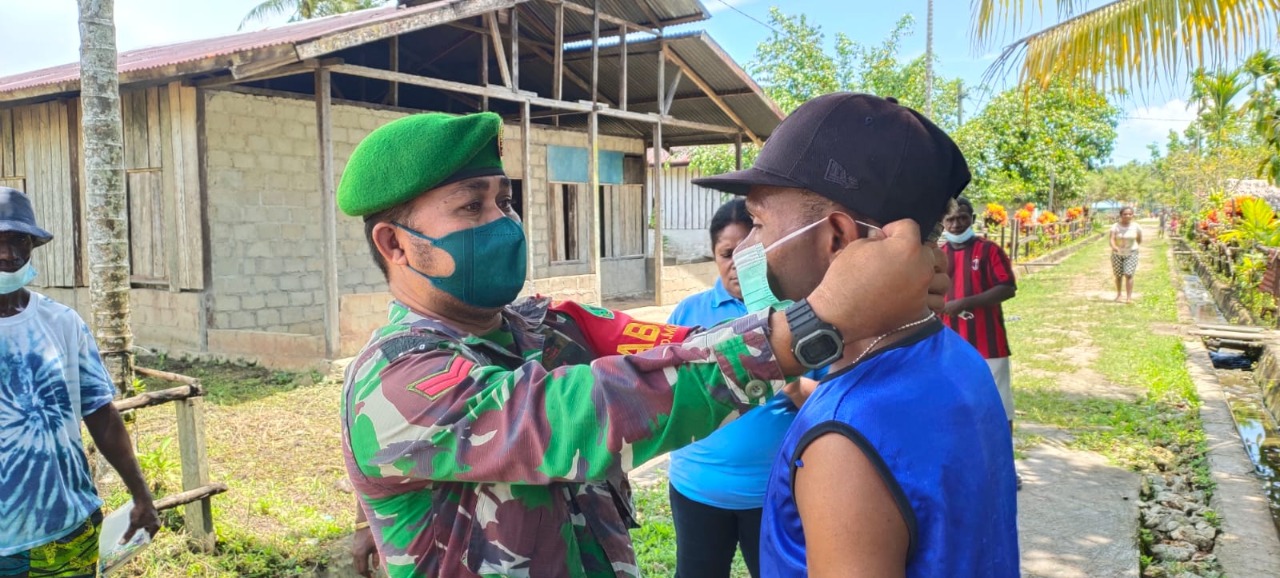 Sorong Papua Barat- Himbauan terus menerus Babinsa Koramil 1802-04/ Seget Koptu Yance Indra Beda melakukan Komunikasi Sosial (Komsos) ke Desa binaannya guna menghimbau warga Kampung Manoke, Distrik Sal Sel. Kabupaten Sorong untuk mematuhi protokol kesehatan (Prokes).Jumat(10/09/2021).