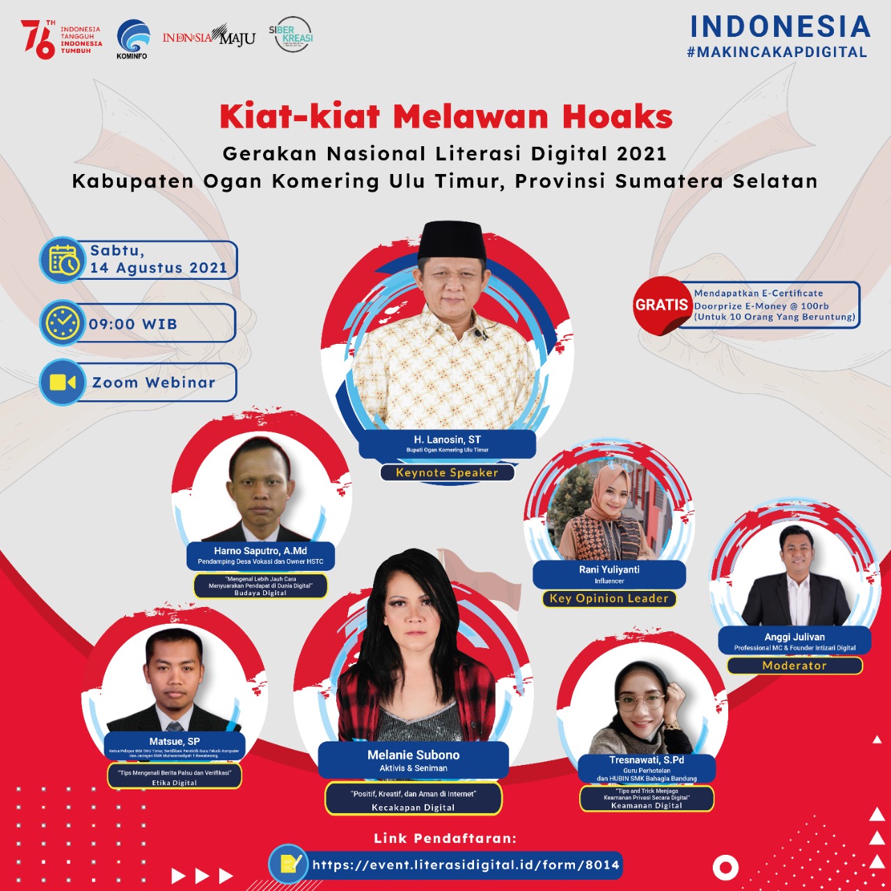 Sebagai Keynote Speaker adalah Bupati ogan Komering Ilir Timur yaitu, H. Lanosin, ST., dan Bp. Presiden RI Bapak Jokowi memberikan sambutan pula dalam mendukung Literasi Digital Kominfo 2021.