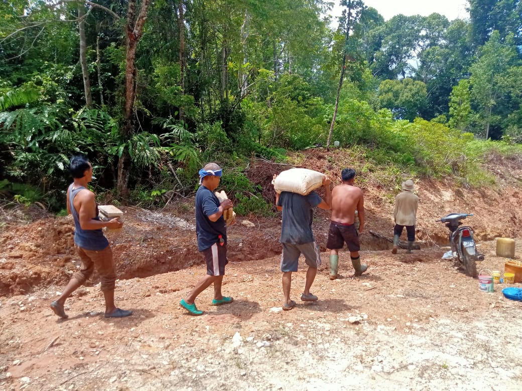 Anggota satgas TMMD turut membantu untuk pengangkatan pasir. nantinya rencana pembangunan tugu TMMD ke-110 Kodim 0318/Mentawai di bangun di sisi Jalan perempatan jalan Desa Bukit pamewa