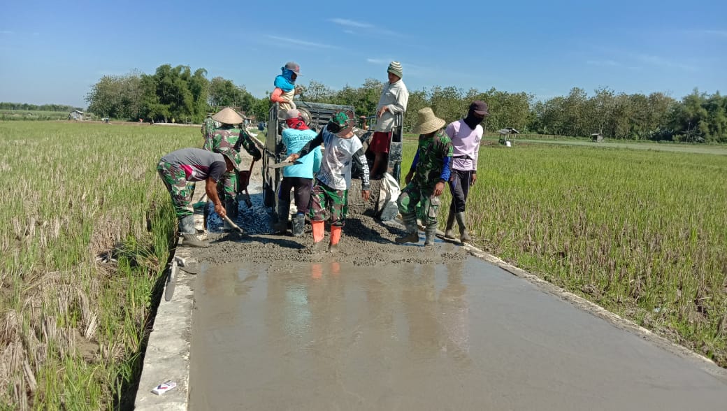 Di tengah lonjakan kasus penyebaran Covid-19, tidak membuat anggota TNI larut dalam kekhawatiran. Mereka terus bekerja mengejar target dalam bertugas demi membangun infrastruktur transportasi Desa Tamansari, Kecamatan Jaken, guna meningkatkan mobilitas dan perekonomian masyarakat,” ujar Pelda Kartono