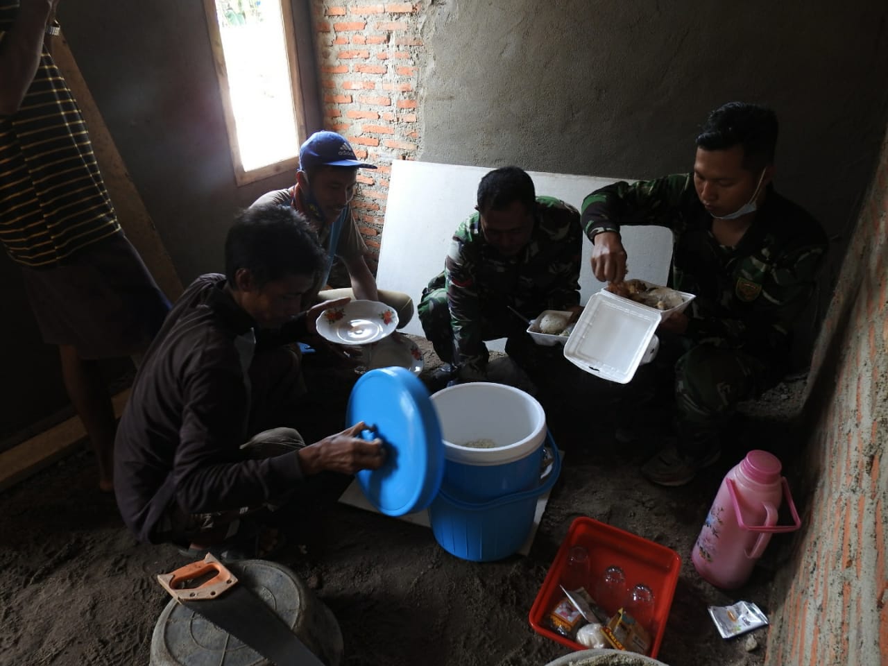 Suasana yang begitu nyaman penuh canda tawa ditunjukkan prajurit yang mengikuti Satgas TMMD Kodim 0429/Lamtim pada saat menikmati makan siang bersama di lokasi bedah Rumah Tidak Layah Huni (RTLH), Senin (15/3/2021).