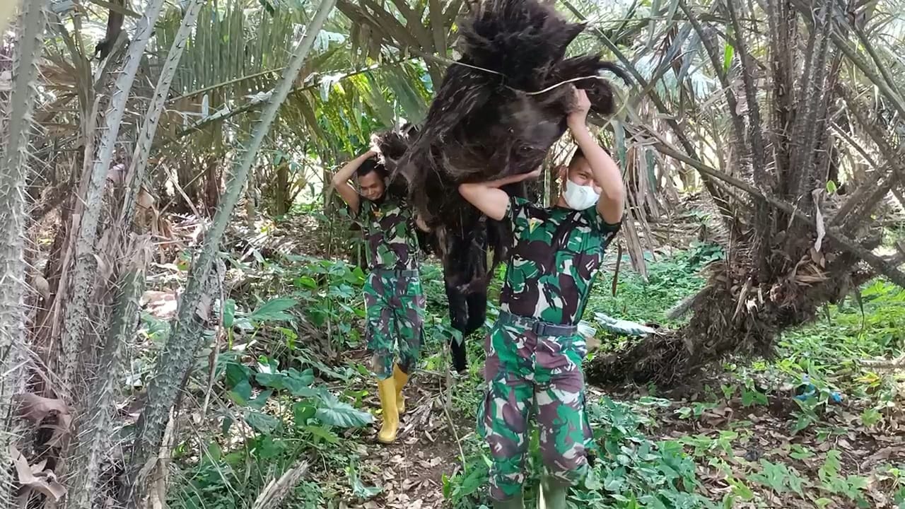 Kegiatan hari kedua puluh sembilan, Satgas TMMD Kodim Tapsel, Satgas Serda Rahmadhoni membantu warga mengangkat Ijuk untuk dijual ke Pasar di Desa Siuhom, Kecamatan Angkola Barat, Kabupaten Tapanuli Selatan.