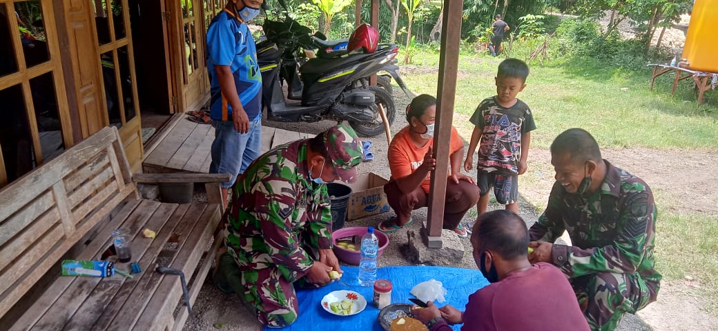 Seperti yang dilakukan oleh Para satgas TMMD di Dusun kramanan Desa jatimulyo Kecamatan Tambakrejo Kabupaten Bojonegoro ini yang juga telah tertanam sikap teritorial. Tampak sekali mereka memanfaatkan waktu luang itu, di setiap kesempatan untuk membaur dengan penduduk setempat, yang kali ini mereka ngerujak bareng.