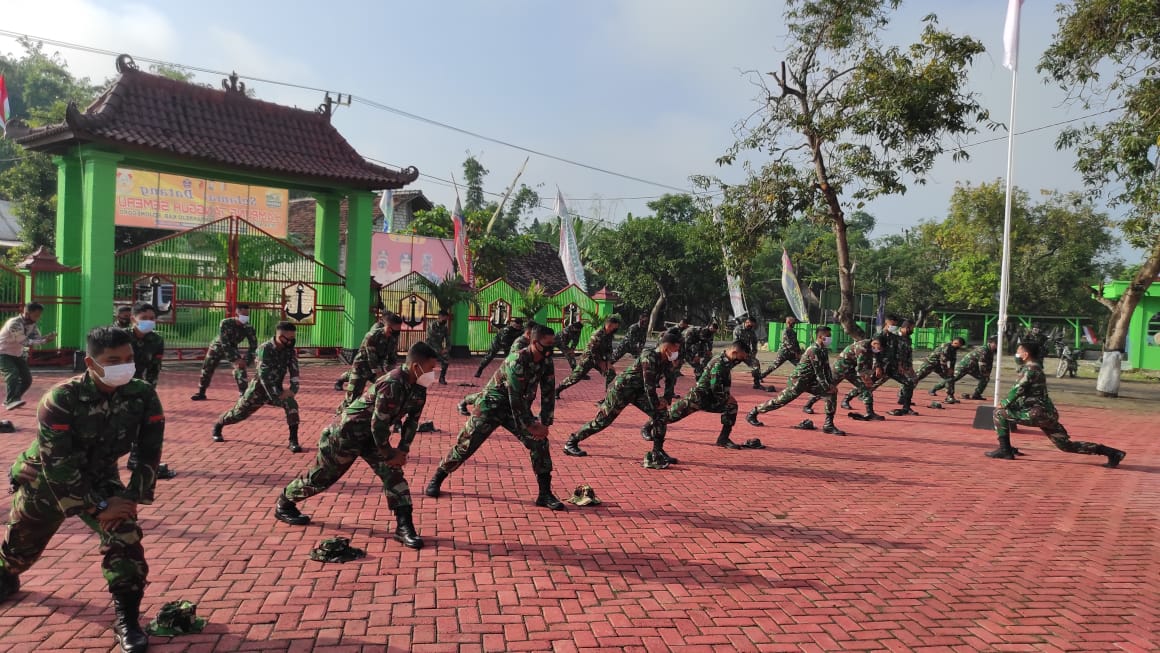 BOJONEGORO – Seusai melaksanakan Apel Pagi, Satgas TNI Manunggal Membangun Desa (TMMD) ke-110 Kodim 0813/Bojonegoro melakukan rutinitas senam bersama guna menjaga imun.