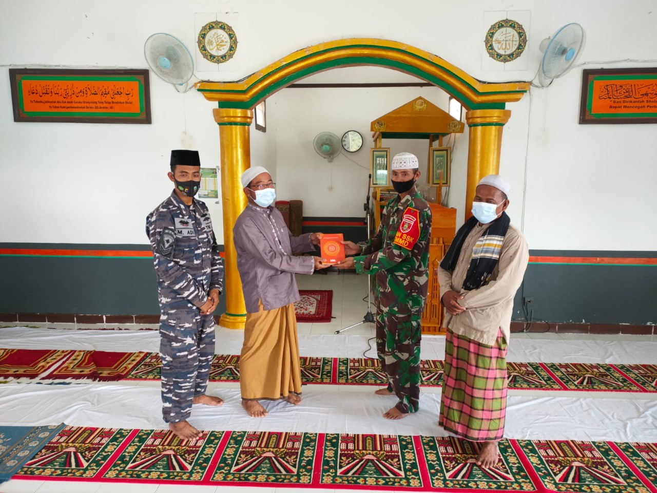 Kotabaru– Satgas TNI Manunggal Membangun Desa (TMMD) Ke- 112 Kodim 1004/Kotabaru, mewakafkan Alquran ke Masjid al karomah Desa Manunggul Baru Kecamatan Sungai Durian Kabupaten Kotabaru, Jumat (7/10/2021).