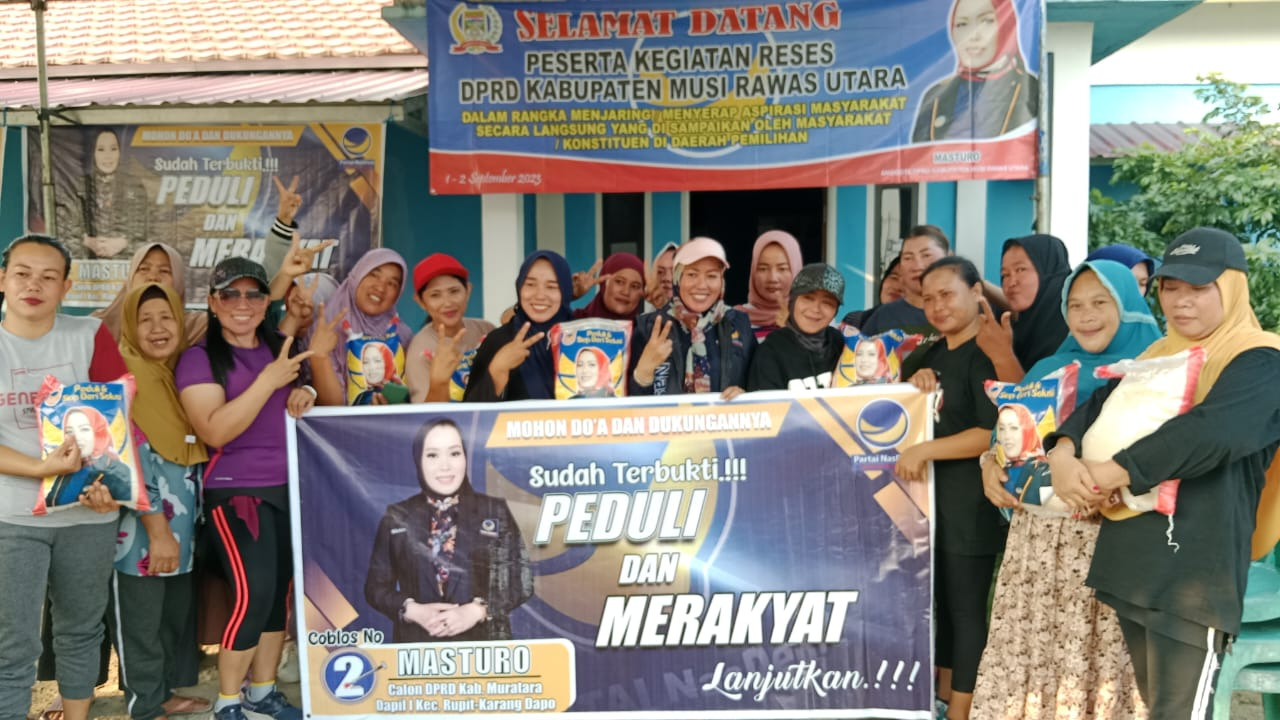 Satu-satunya legislator perempuan yang duduk di DPRD Muratara ini, juga secara langsung membagikan 200 bingkisan berupa beras 5 kg kepada ratusan peserta reses yang didominasi ibu-ibu. Hal ini dilakukan Masturo, sebagai upaya untuk membantu para ibu rumah tangga yang tengah kesulitan, lantaran harga beras yang cenderung naik pada saat ini. “Saya satu-satunya Anggota DPRD Muratara perempuan yang mewakili perempuan. Tentunya tahu betul, kendala dan beban yang dirasakan oleh Ibu – Ibu rumah tangga saat ini, akibat harga beras yang tinggi. Maka dari itu, pada kesempatan kali ini, saya melakukan pembagian bingkisan beras kepada Warga, khususnya ibu – ibu. Setidaknya hal ini dapat sedikit mengurangi beban mereka. Hal ini sebenarnya sudah sering saya serta Partai Nasdem lakukan. Seperti pada saat harga minyak goreng naik dan sembako naik beberapa waktu lalu, kami juga melakukan hal yang sama, membagikan bingkisan minyak goreng serta membagikan sembako murah di Kantor DPD Nasdem,” jelas Masturo.