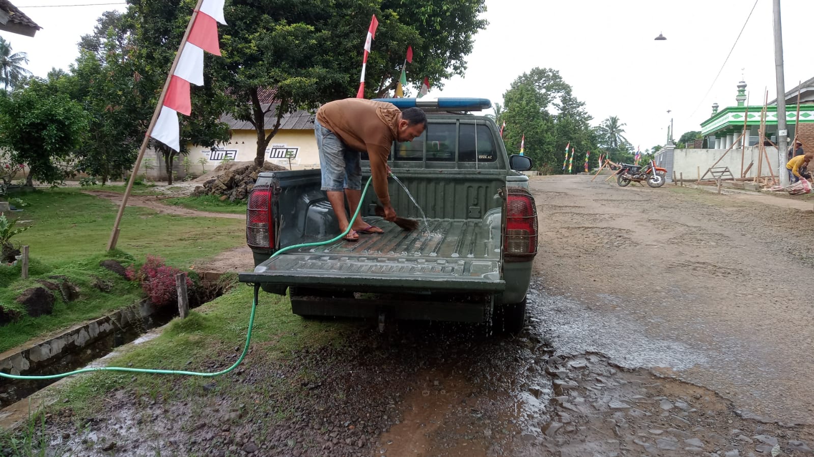 Seperti yang terpantau pada hari Sabtu Sore (24 Mei 2025), bertempat di Posko TMMD, ada dua orang warga sedang mencuci kendaraan dinas operasional untuk kelancaran program TMMD ke-124 Kodim 0429/Lamtim.