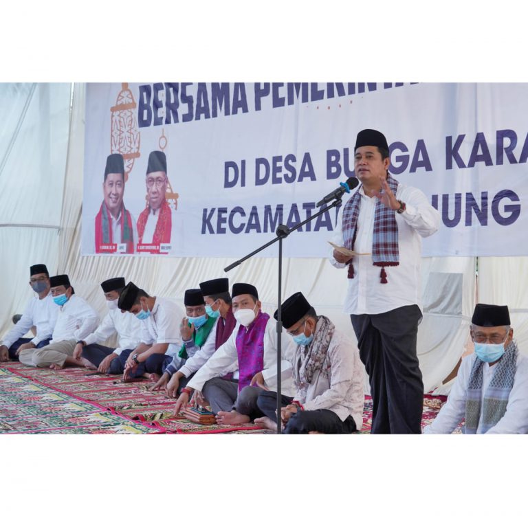 Kliksumatera.com, BANYUASIN– Bupati Banyuasin, H. Askolani, SH., MH bersama Wakil Bupati Banyuasin, H. Slamet Somosentono, SH melakukan Safari Ramadhan dan Taraweh Keliling. Kali ini di Desa Bunga Karang, Kecamatan Tanjung Lago, Kabupaten Banyuasin, Senin (3/05/2021).