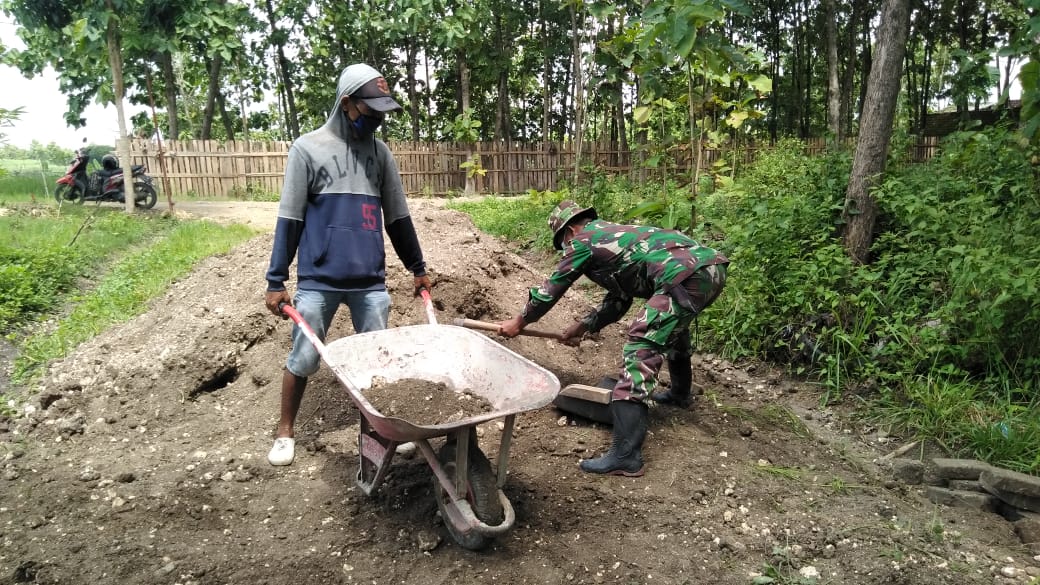 Satgas TMMD Kodim 0813/Bojonegoro itu secara bergotong royong bersama masyarakat Dusun Kramanan, Desa Jatimulyo, Kecamatan Tambakrejo.