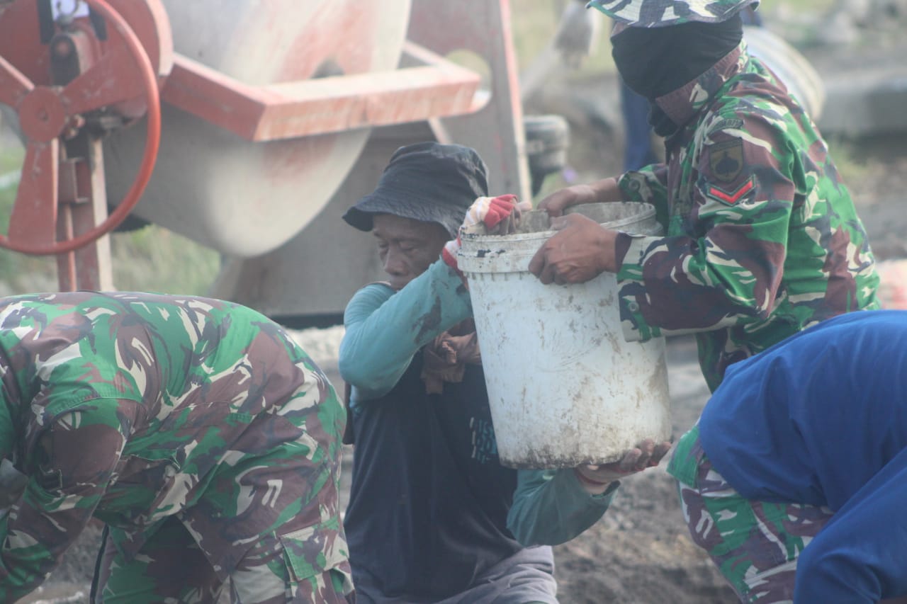 “Mbah Rusmani ini salah satu warga yang sangat getol bekerja disini membantu membuat adonan beton cor, kalau saya lihat kasihan juga tapi mau bagaimana lagi dia semangat sekali dalam bekerja,”ujar Sertu Budi Waluyo.Minggu,(27/06/2021).