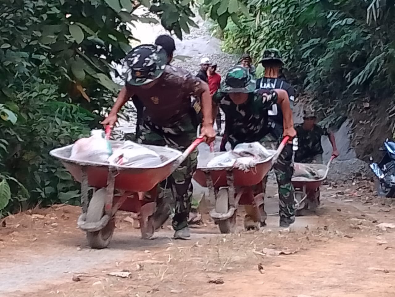 Purworejo -Anggota Satgas TMMD Reg 118 Kodim 0708/Purworejo terus mengangkut material bangunan berupa Pasir yang jauh harus diangkut secara manual hingga mencapai titik terdekat dari pengecoran jalan.Selasa 10-Okt-23