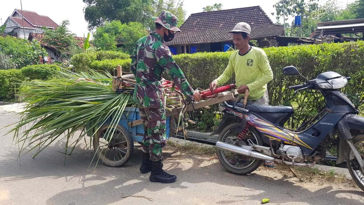 “Terimakasih banyak pak TNI sudah bantu ringankan saya angkat muatan kegerobak,” kata Ngadiri