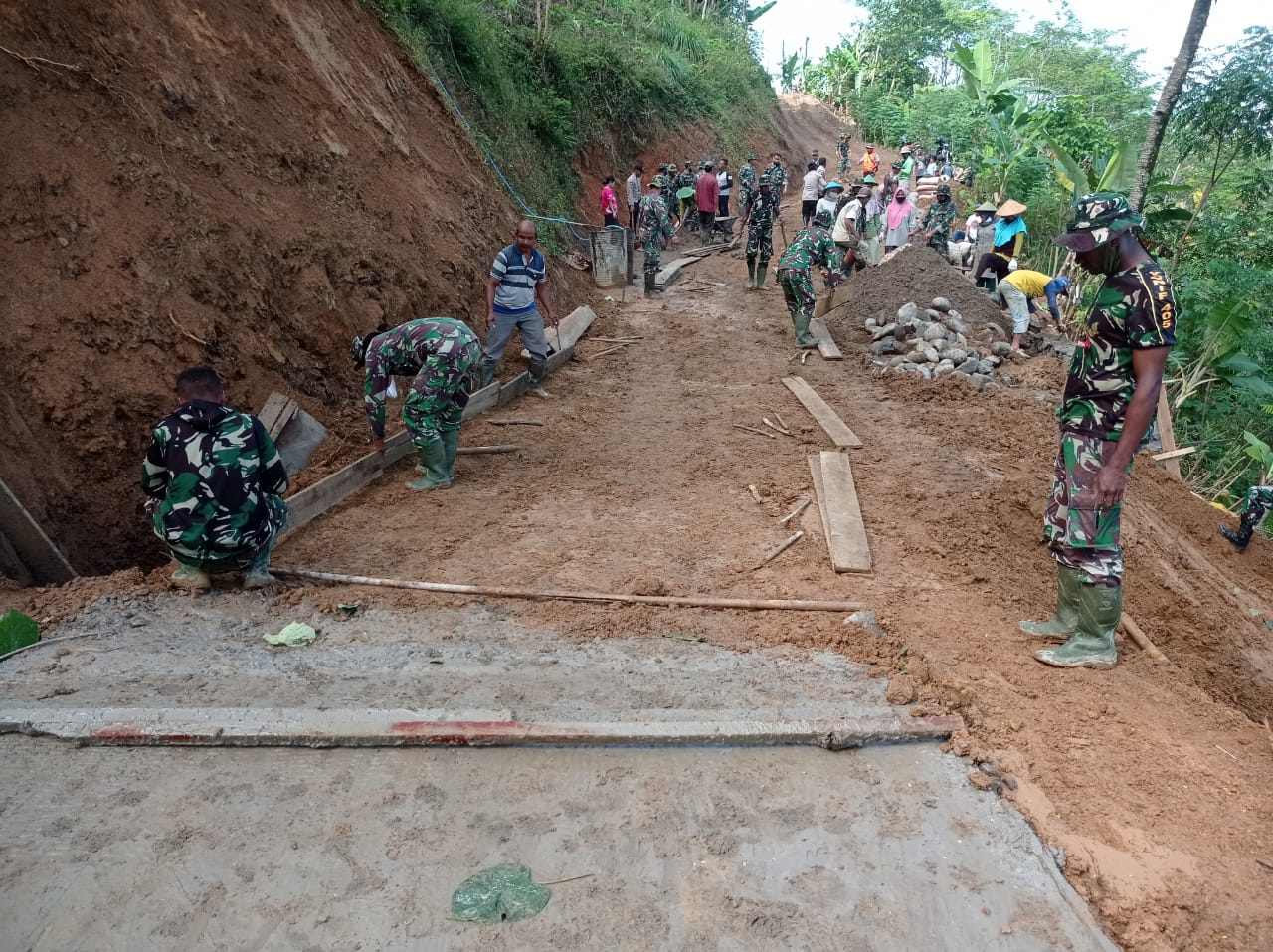 Tidak terasa, dua pekan sudah para warga desa Kebutuhjurang terlibat di pembangunan jalan TMMD di desanya. Sejumlah warga sudah sering melanjutkan pengecoran jalan secara sendiri. Mulai membuat adukan, meratakan dan hingga menjadi jalan cor.