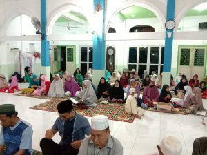 Kliksumatera.com, PALEMBANG- Peringatan Maulid Nabi Muhammad SAW 1444 H di Mesjid Al Irsyad di Jalan Cut Nyak Dien Kecamatan Ilir Barat 11 Palembang berlangsung meriah. Tidak kurang ratusan jemaah memadati mesjid tersebut, Rabu malam bakda Isyak (12/10/22).