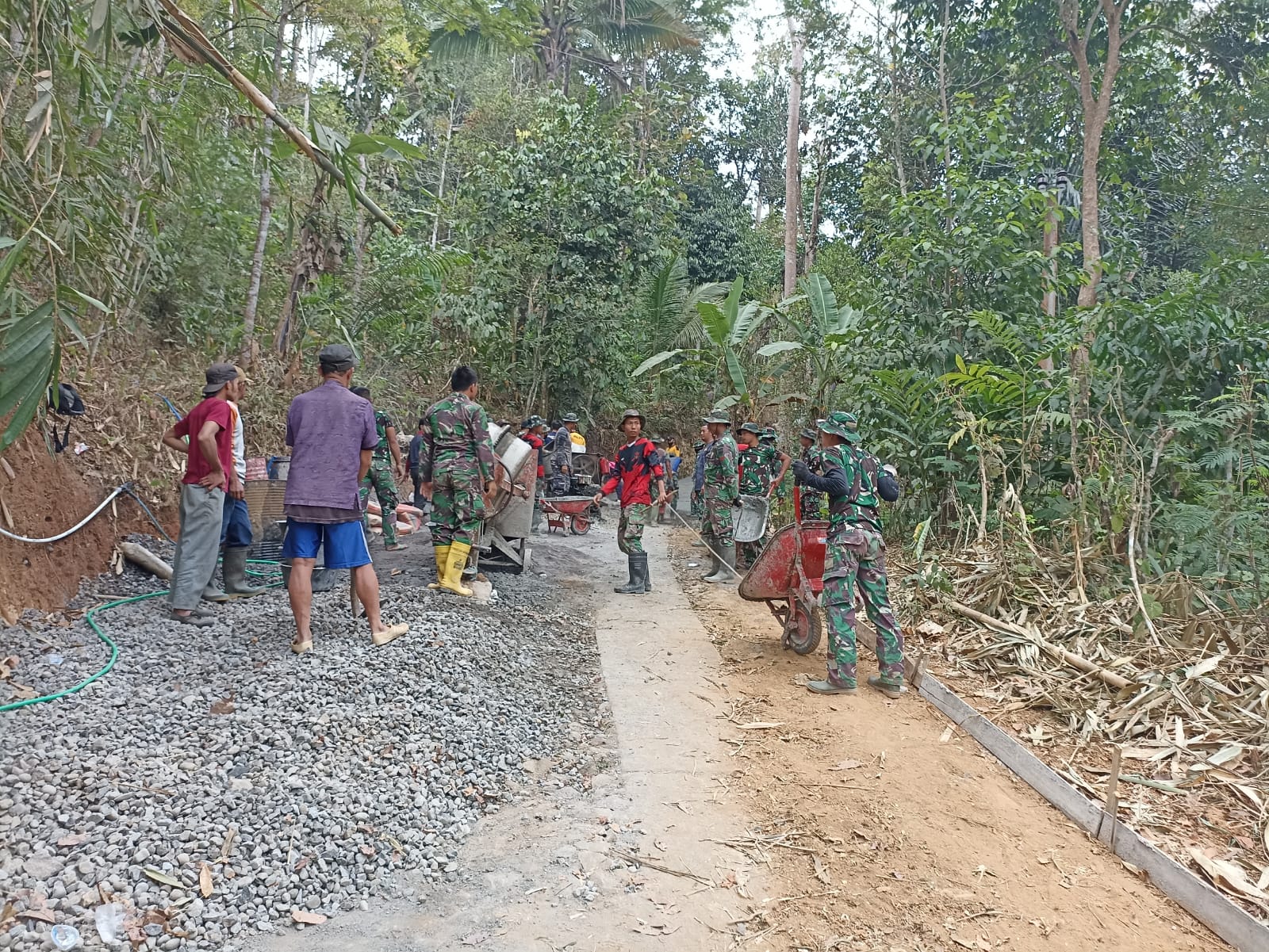 “Anggota TNI bersama warga desa Benowo terus bersinergi untuk melaksanakan pengecoran jalan, di tangan anggota satgas TMMD angkong merupakan sebuah kendaraan multi fungsi yang mampu mendukung kelancaran kegiatan pengecoran jalan”, ucap Danramil 13/Bener Kapten Inf Ahmad Kurdi selaku koordinator di lapangan.