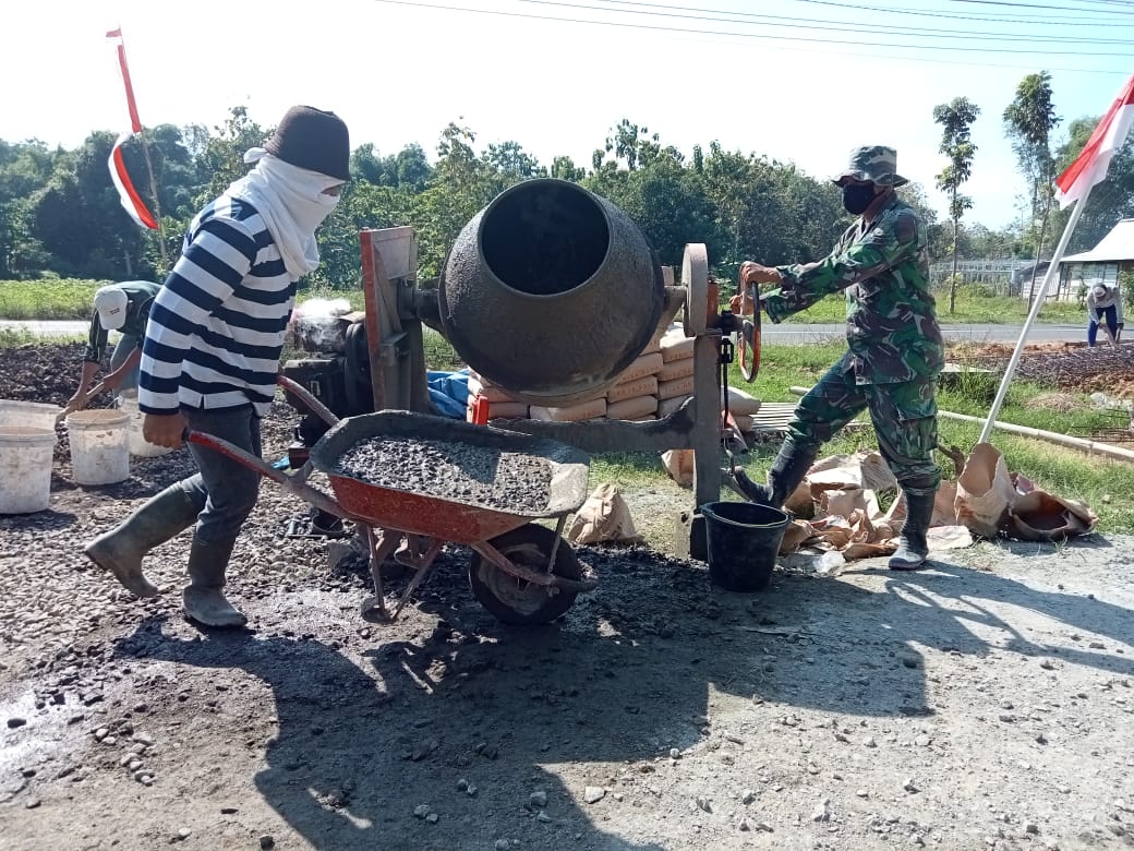 Pati-Penggunaan mesin molen pengaduk adonan beton cor merupakan alat yang sangat penting yang digunakan dalam pembangunan jalan di TMMD Reguler 111 Kodim Pati.