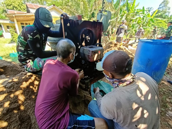 “Hari ini ditambah salah satu mesin yang kita gunakan mengalami kerusakan, tanpa menunggu instruksi dari DanSSK satgas TMMD saya langsung mencari warga yang mengerti tentang kerusakan mesin molen dan mesin dapat digunakan kembali oleh satgas TMMD untuk memperlancar proses pengerjaan rabat beton jalan” tambahnya.