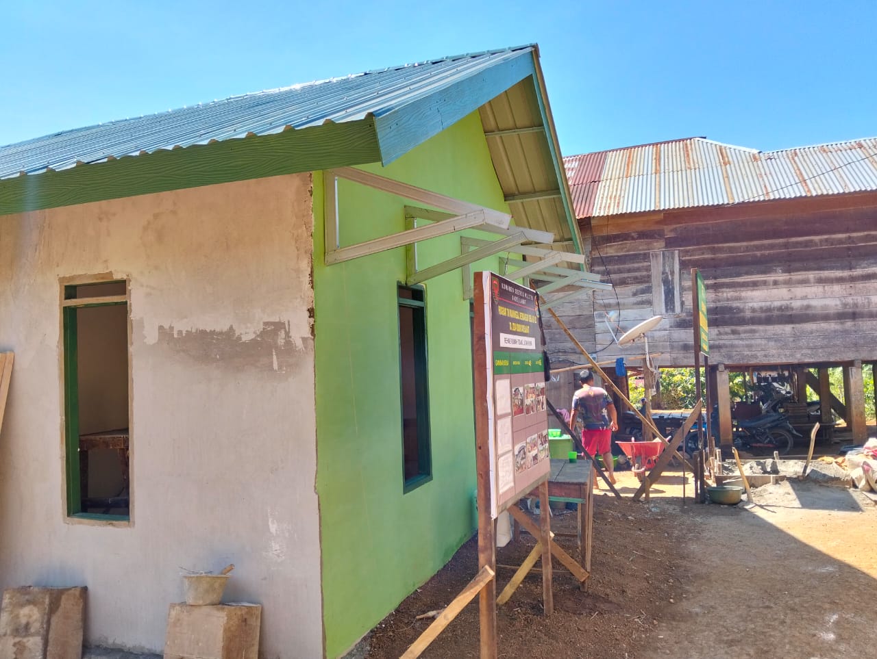 Dia menambahkan, untuk pemasangan atap rumah dan pet jendela tidak ada permasalahan lagi. Untuk pengerjaan fasilitas sanitasi pun demikian.