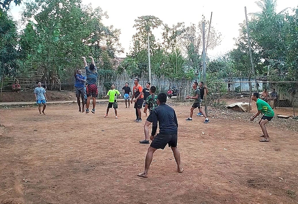Way Kanan – Dusun 3 Mojo Sari, kampung Gunung Katun saat sore hari kemarin Kamis, 28/09 sedikit berbeda, anggota Yonif 143/TWEJ yang tergabung dalam Satgas Tentara Manunggal Membangun Desa (TMMD) ke-118 Kodim 0427/Way Kanan, menyatu dengan warga dalam sebuah kegiatan olahraga bola voli.