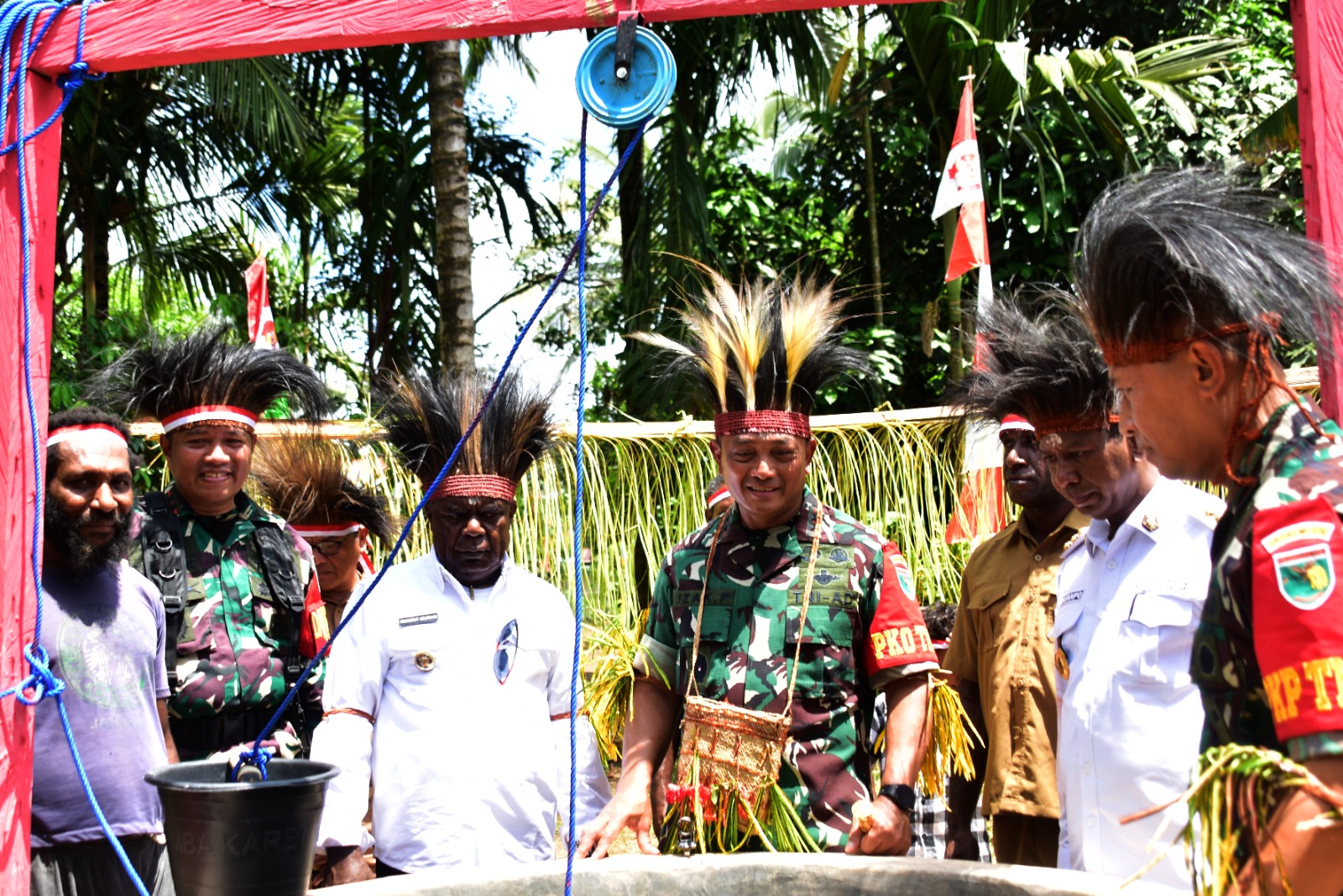 “Satu unit sumur air bersih sebagai “Over Prestasi” Satgas TMMD Ke-119 Kodim 1707/Merauke untuk masyarakat Po Epe juga selesai dibangun sebelum penutupan, jadi jumlah sumur air bersih yang dibangun Satgas TMMD sebanyak 5 unit”. jelasnya.