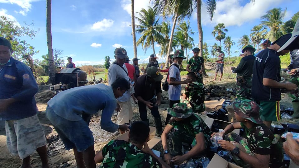 Kekompakan dan kebersamaan tidak saja nampak dalam aktivitas pengerjaan sasaran fisik program TMMD Reguler Ke-111 Kodim 1627/Rote Ndao, tetapi juga nampak dalam istirahat siang.