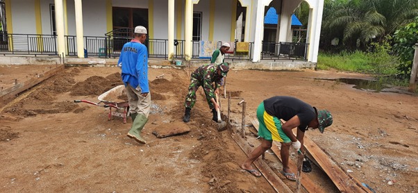 Kubu Raya – Setelah TMMD ke-111 Kodim 1207/Pontianak ditutup, Babinsa Kuala Mandor B (Sertu Asiani) bantu warganya pasang papan mal, Minggu (18/07/2021).