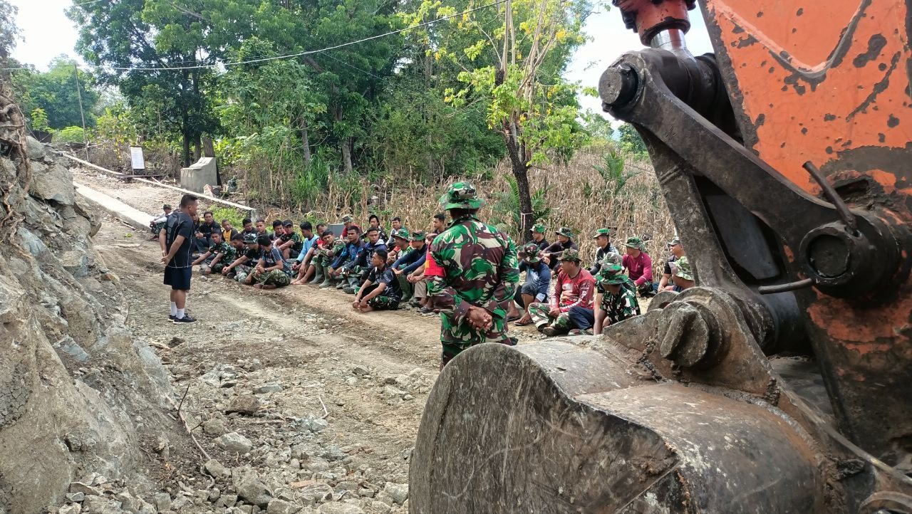 Pasi Ter Kodim 1407/Bone Kapten Inf. M. Arsyad memimpin apel pagi Personel Satgas TMMD ke – 122 sebagai bentuk pengecekan sebelum melaksanakan pekerjaan sasaran fisik, bertempat di Desa Maminasae, Kecamatan Lamuru, Kabupaten Bone. Minggu (27/10/24).