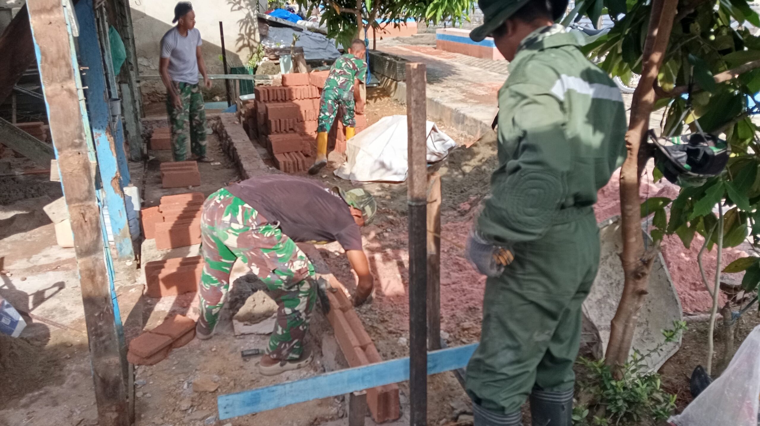 Dalam tahap pemasangan batu bata, para personel TNI terlihat sangat mengedepankan ketelitian dan kerapian guna memastikan struktur bangunan kokoh serta tahan lama. Hal ini merupakan wujud dedikasi TNI dalam memberikan hunian yang layak dan aman bagi masyarakat yang membutuhkan di wilayah tersebut.