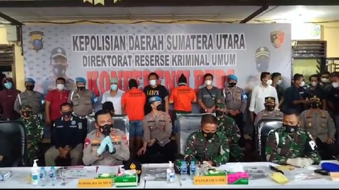 Kliksumatera.com, MEDAN- Kapolda Sumatera Utara, Irjen Pol Panca Putra Simanjutak didampingi Pangdam I/BB, Mayjen TNI Irwansyah sesuai janjinya kemarin kepada awak media, memaparkan hasil pengungka pan kasus pembunuhan Marsal Harahap di Mapolres Pematang Siantar, Kamis (24/6/2021) sekira pukul 17.20 Wib.