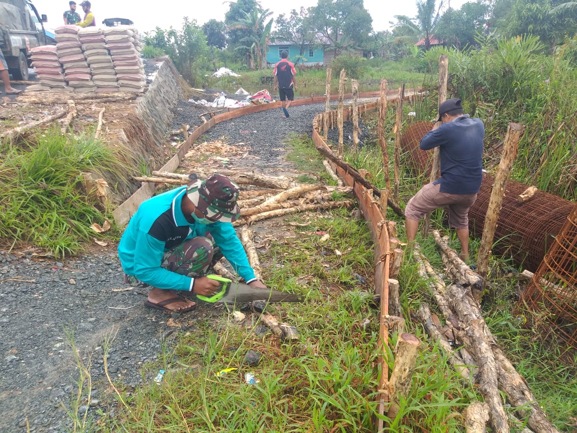 Hal ini dilakukan untuk mendukung suksesnya kegiatan Program TMMD yang telah memasuki pekan ketiga. Dengan penuh ketelitian Pelda Nur terus mengergaji untuk mendapatkan ukuran kayu yang nantinya akan dipasang dalam pembuatan jembatan.
