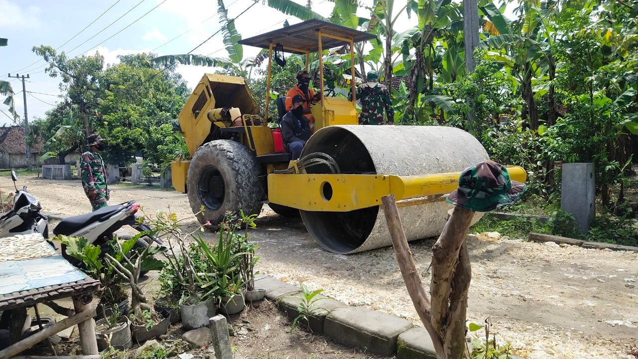 Bojonegoro – Tim TMMD 110 Kodim 0813/Bojonegoro bersama masyarakat bekerja sama membangun jalan di Desa Jatimulyo, Kecamatan Tambakrejo, Kabupaten Bojonegoro.