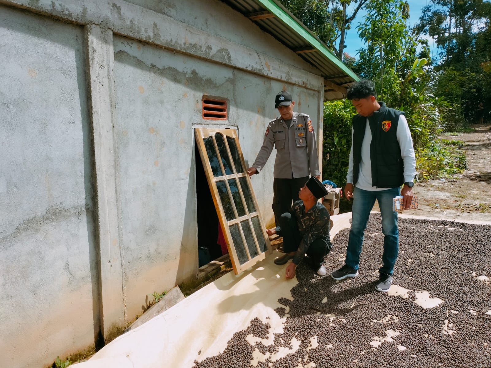 Dari pemeriksaan TKP dirumah SDR PANGKI ,kuat dugaan telah terjadi pencurian dengan modus pelaku mencongkel jendela samping rumah kemudian mengambil 2(dua) karung biji kopi yang masih berkulit seberat kurang lebih 50 (lima puluh) kg dan 1 (satu) buah tabung Gas 3 kg yang disimpang di dalam rumah .Pada saat kejadian rumah sedang ditinggal oleh penghuninya .