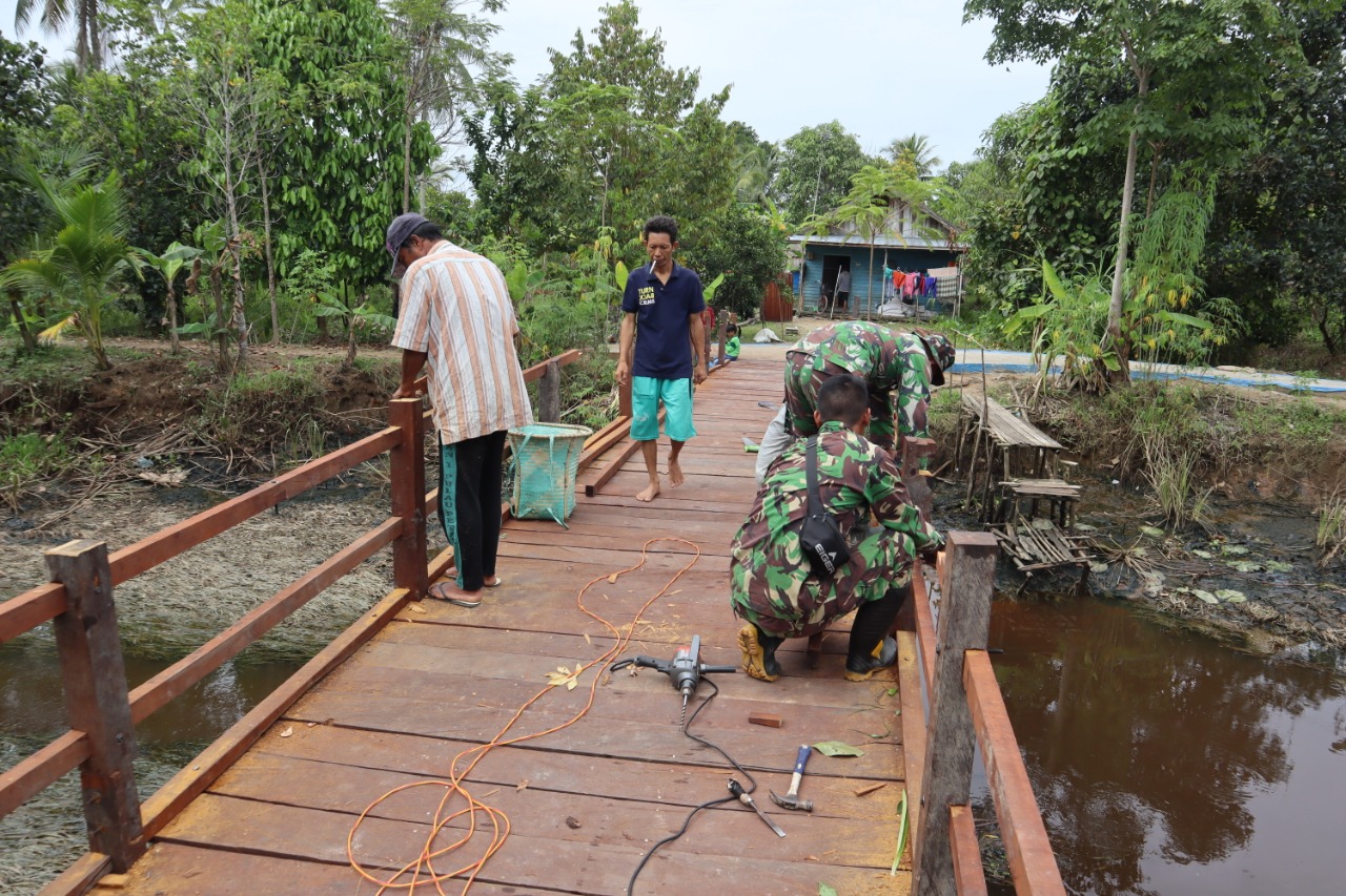 KAPUAS,- Satuan tugas (Satgas) TNI Manunggal membangun desa (TMMD) ke-110, Tahun anggaran 2021 di Desa Saka Lagun, Kecamatan Pulau Petak, Kabupaten Kapuas, hampir menyelesaikan pembangunan jembatan, karena progres pekerjaan telah mencapai 90%.