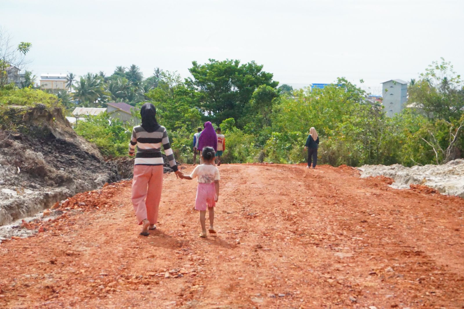 Salah satunya adalah Ibu Madina warga RT 04,Kelurahan Pantai Amal, ia bersama anak dan Warga lainya datang langsung melihat kondisi jalan yang tadinya belum ada menjadi ada.