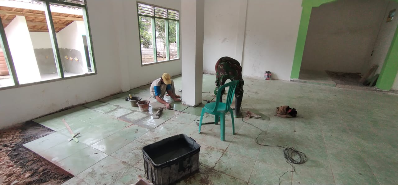 Kali ini anggota Satgas TMMD ke-111, bersama- sama dengan warga pasang keramik dalam melakukan renovasi masjid. Perehapan masjid Nurul Hidayah ini merupakan salah satu dari lima sasaran pembangunan fisik pada Program TMMD ke-111 Kodim 0427/Way Kanan.