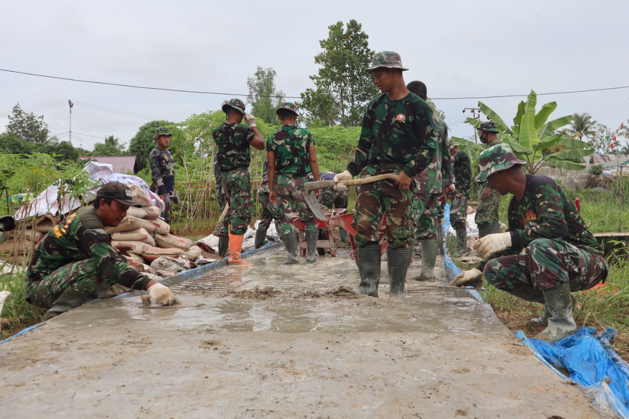 Kapuas – Pekerjaan Semenisasi jalan usaha tani di Desa Saka Lagun Kecamatan Pulau Petak Kabupaten Kapuas kini telah dilakukan oleh satgas dan juga warga dilokasi TNI Manunggal Membangun Desa (TMMD) ke 110. Pekerjaan tersebut dilaksanakan dengan gotong royong agar dapat terselesaikan sesuai dengan waktu yang telah ditentukan. Kebersamaan dan kekompakan terlihat begitu nyata antara TNI dan Rakyat dan kemanunggalanya. Suatu bentuk pengabdian TNI kepada Rakyat yang sangat luar biasa.