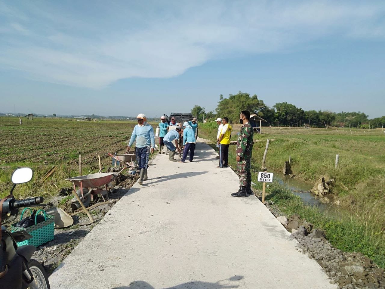 Pati – Dengan kerja keras antara TNI Kodim Pati dan warga, akhirnya salah satu sasaran fisik TMMD Reguler ke-111 Kodim 0718/Pati, di Desa Tamansari, Kecamatan Jaken kabupaten Pati, selesai. Antusias warga menyambut dengan gembira selesainya jalan yang menghubungkan Desa Tamansari dan Desa Sumberejo.