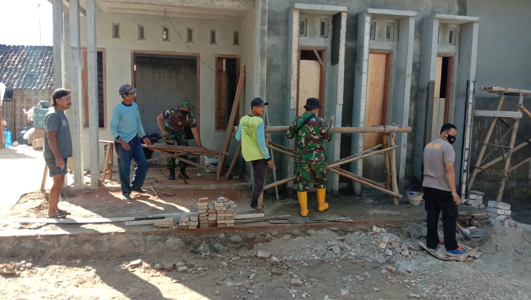 Pati – Personel TNI – Polri yang saat ini sedang mengerjakan pengacian dinding bagian depan Rumah Tidak Layak Huni (RTLH) milik Sapari (60), warga Dusun Pandahan Rt.01 Rw.02 salah satu program TMMD Reguler Ke-111 Kodim 0718/Pati yang berlokasi di Desa Tamansari, Kecamatan Jaken, Kabupaten Pati. Kamis (8/7/2021)